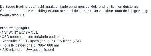 Eyseo Ecoline dag/nacht, 12V, 550 TVL